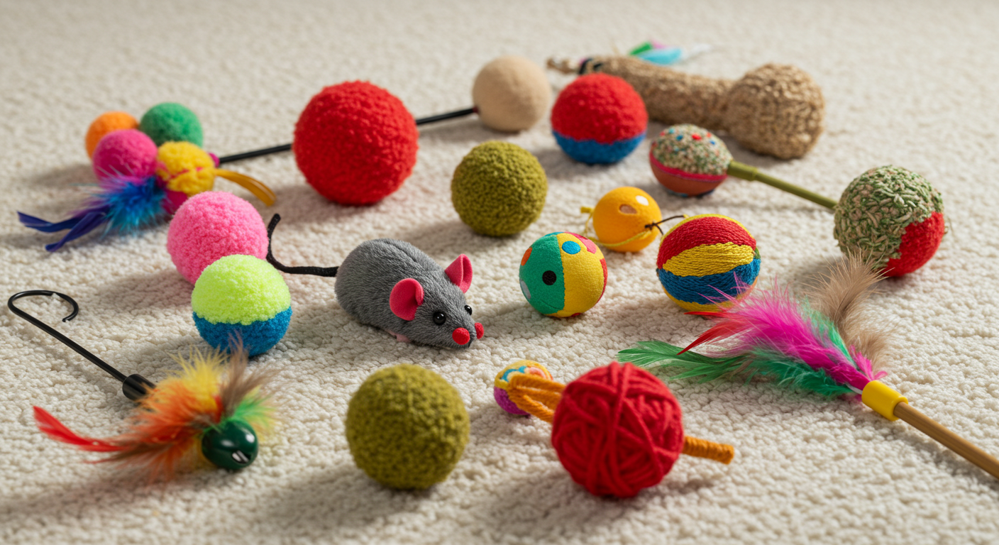 가장 기본적인 놀이기구이자 고양이의 사냥 본능을 직접적으로 자극하는 장난감입니다. 깃털이나 방울이 달린 낚싯대는 집사와 고양이가 교감하며 놀기 좋습니다. 이때 고양이가 잡기 직전까지 기다렸다가 놓아주면, 고양이의 성취감을 높여줄 수 있습니다. 또한, 혼자서도 잘 가지고 노는 공 장난감은 캣닢이 들어있거나 흔들면 소리가 나는 종류가 많아 고양이의 흥미를 유발합니다.
